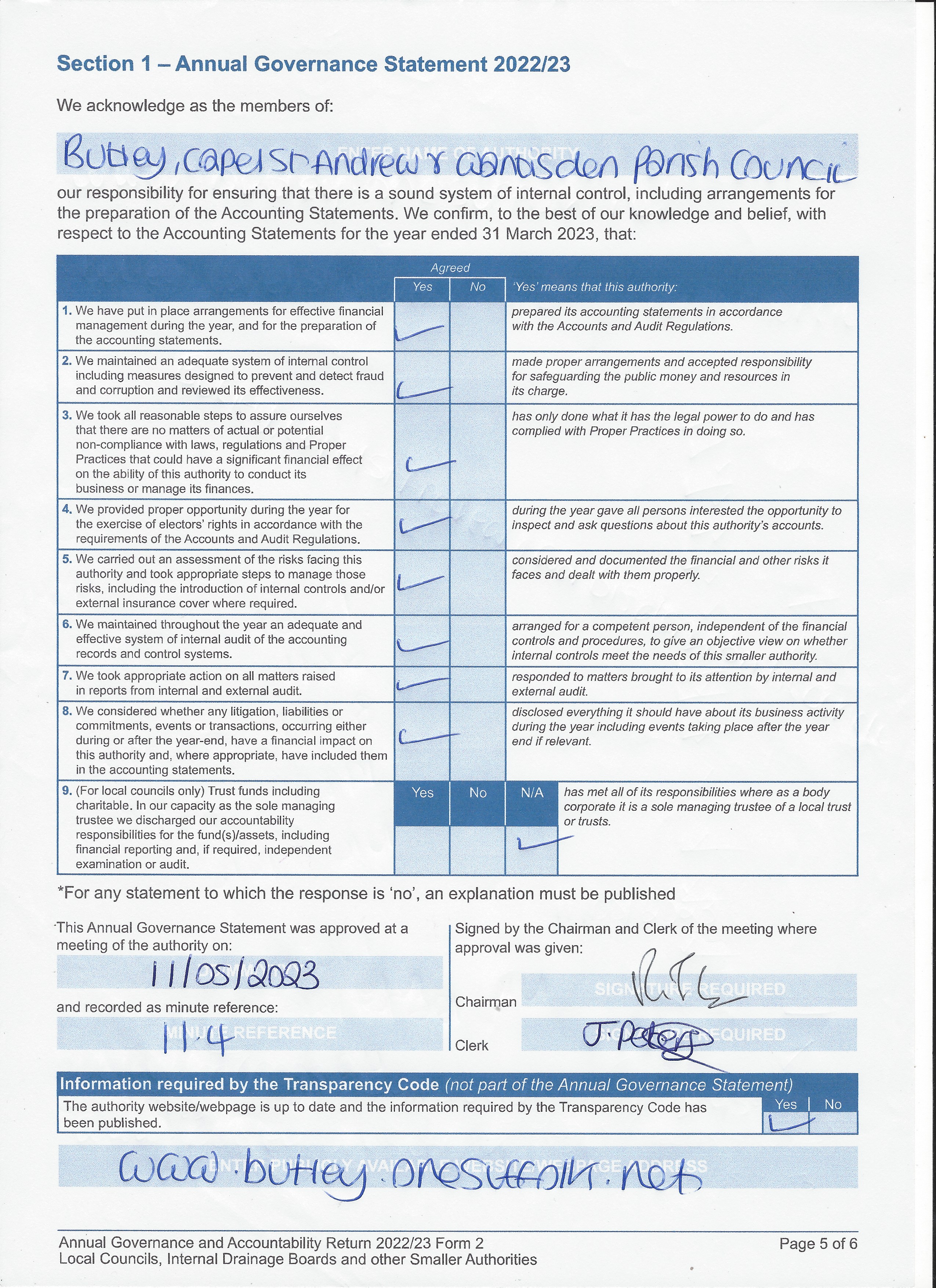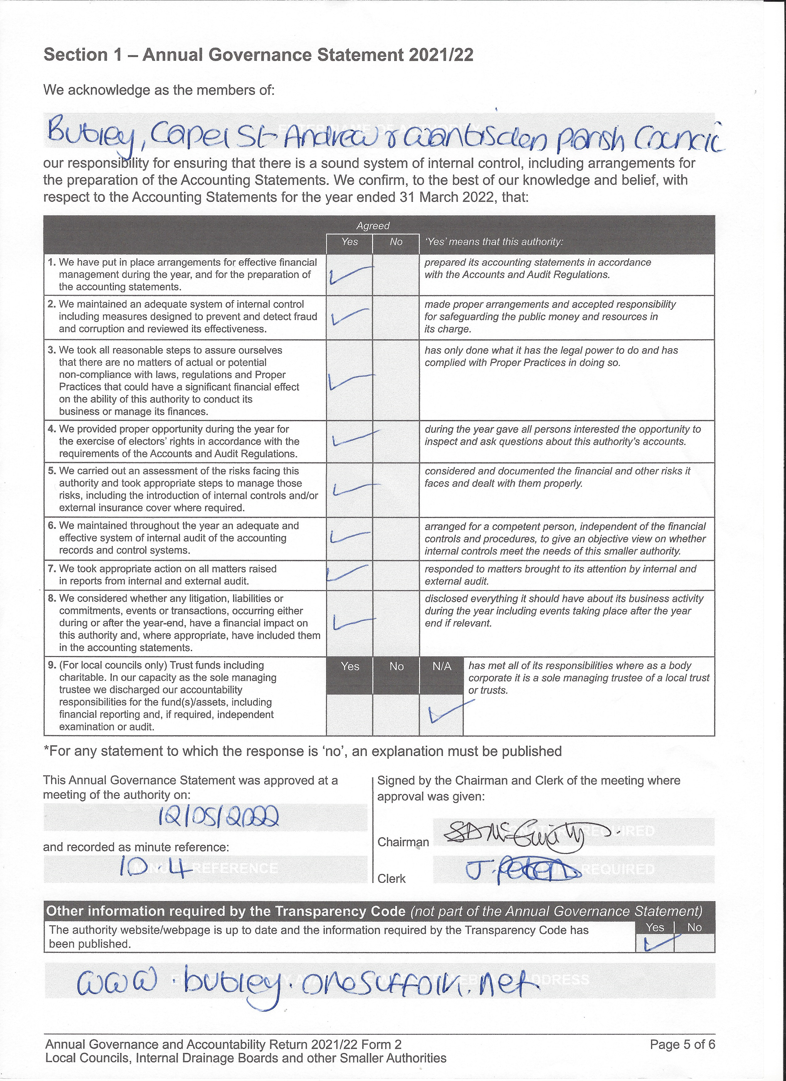 Section 1 - Annual Governance Statement - Click Here