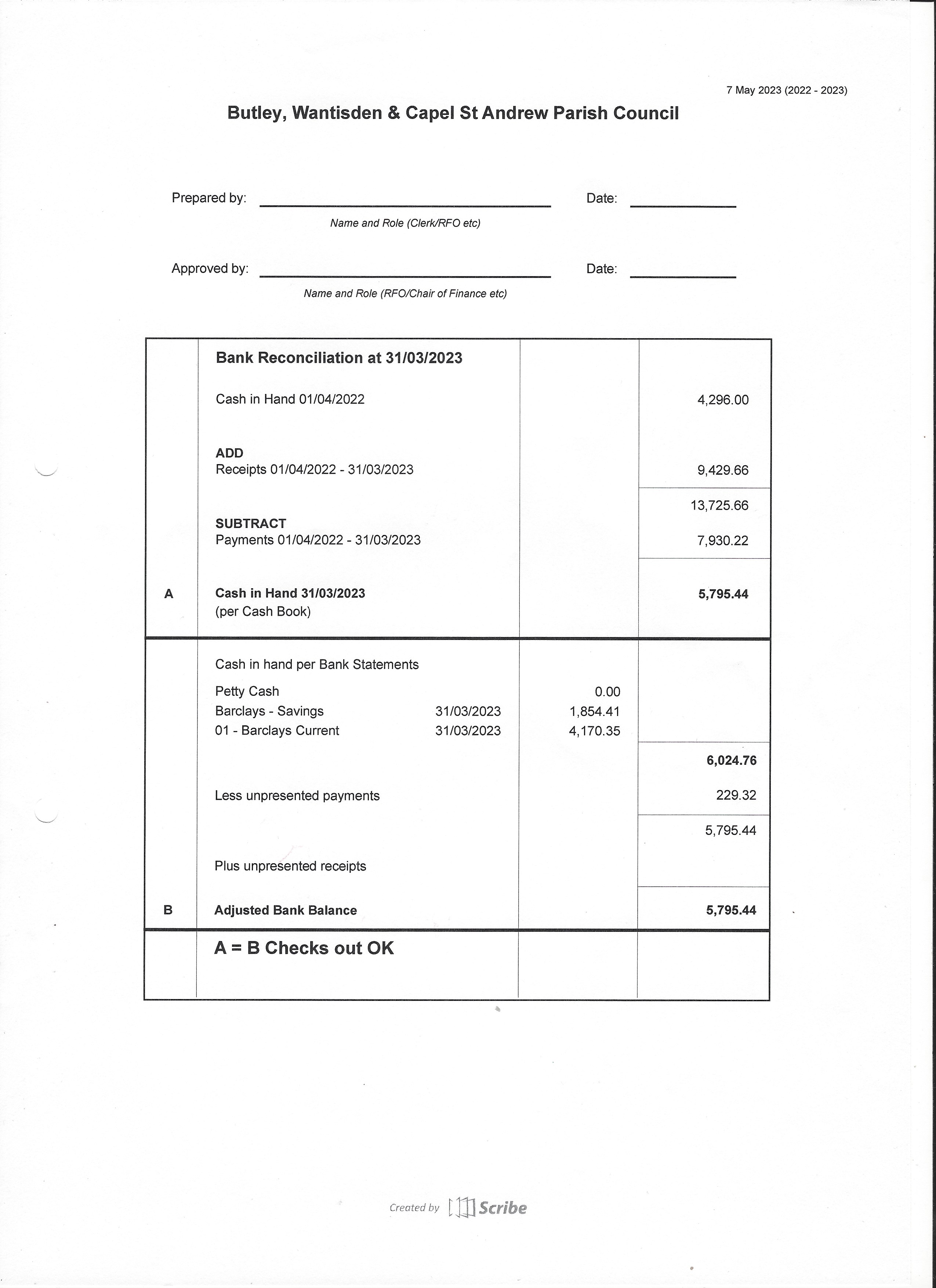 Bank Reconciliation as at 31.3.2023 - Click Here